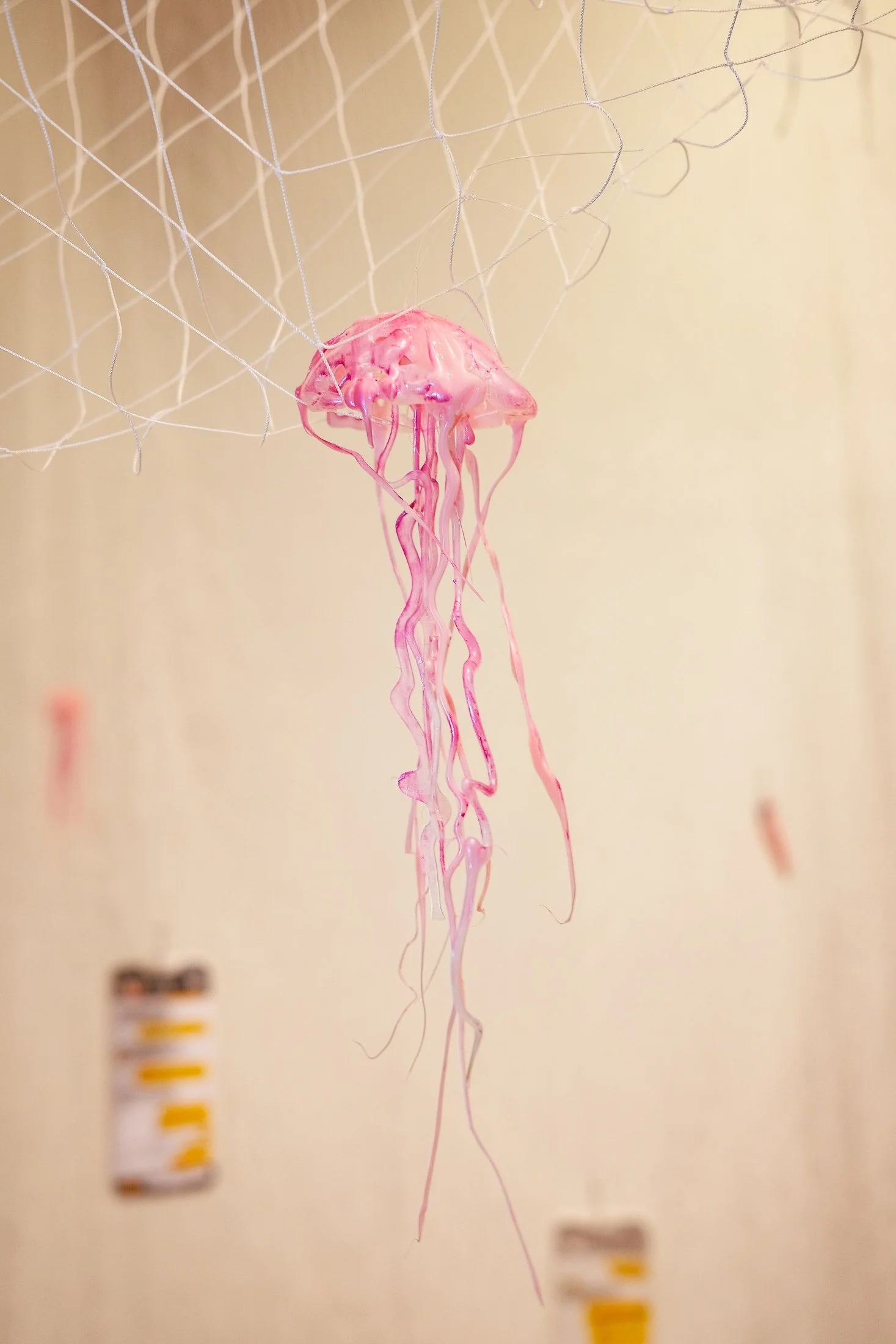 To stand out in the sea of available options, the dating app profiles reveal fragments of their users' identities while omitting their less alluring sides. Yet jellyfish, also caught in the net and present in each profile, loom as a reminder of the twisted thoughts, dark desires, and insecurities that people strive to hide in their online persona.